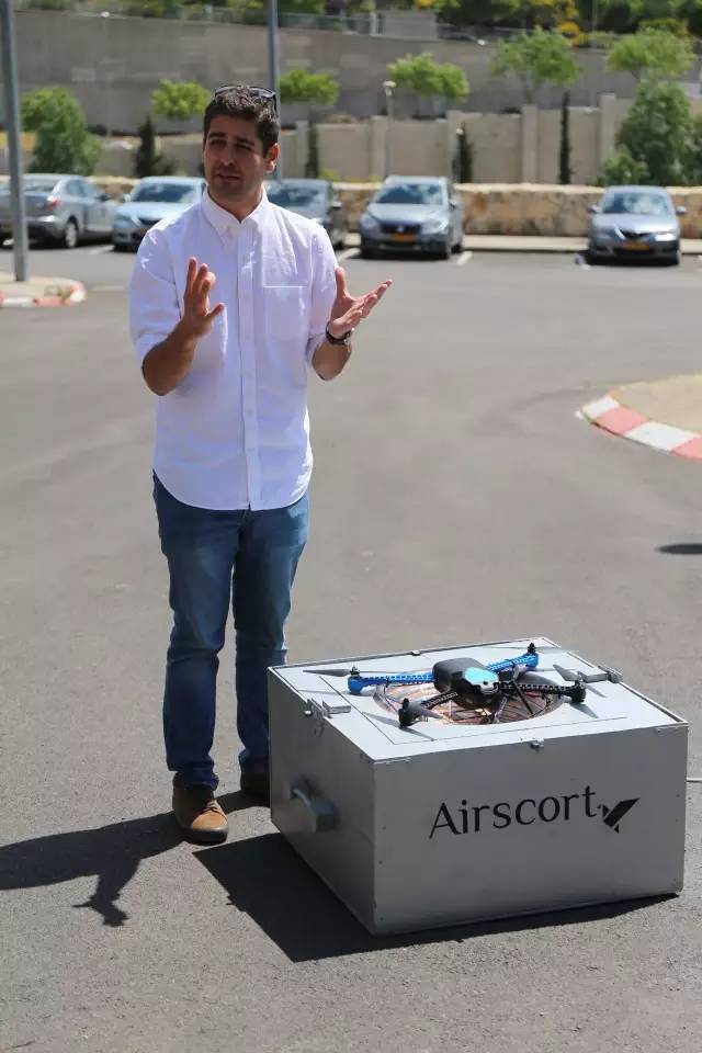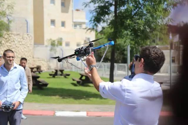 深度感受了以色列的军事和文化后,我们马不停蹄去往希伯来大学创业孵化器。观看了Airscort公司年轻人创业者为我们演示无人机从飞行,到回到充电桩的过程: